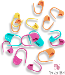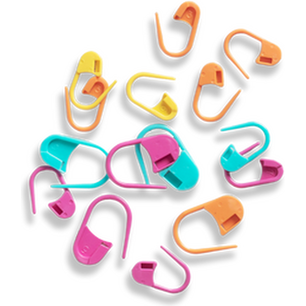 Värikkäät ja käytännölliset lukittavat silmukkamerkit helpottavat neulomista ja pitävät projektisi hallinnassa alusta loppuun. Hakaneulamallinen malli tekee niistä turvalliset ja monikäyttöiset – voit kiinnittää ne suoraan silmukkaan tai puikolle.